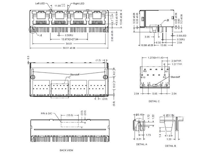 RTC-1QDBAM1Aadalah jack modular RJ45 berdensitas tinggi, 4-port (1x4) dengan magnetik 10/100/1000Base-T terintegrasi. Dirancang untuk aplikasi jaringan berkinerja tinggi, ia menggabungkan pelindung EMI superior, LED status terintegrasi, dan jejak yang ringkas untuk menghemat ruang PCB. Sangat ideal untuk switch, router, dan peralatan komputasi industri yang membutuhkan banyak port Ethernet berkecepatan tinggi.Gemini 说Spesifikasi Produk: RTC-1QDBAM1A