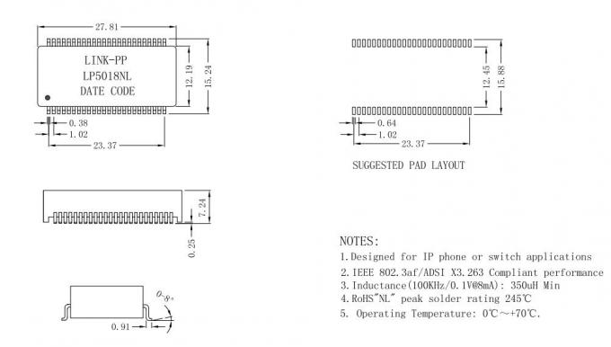 | H2017NL / H2017NLT PC Mainboard Lan Transformer 1500Vrms Networking LP5018NL | |||